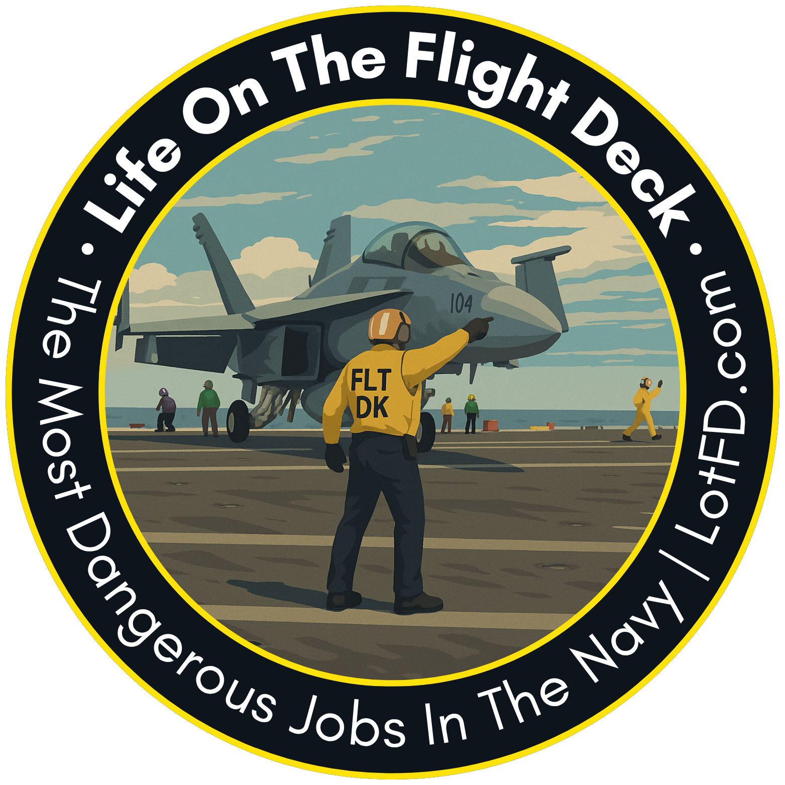 It’s the most dangerous four and a half acres on earth. A place where jet blast and prop wash threaten to blow you overboard. Spinning props that are almost invisible threaten to make a sailor disappear. Jet intakes that will suck you inside an engine before you can react. Arresting cables the size of a man’s wrist snap across the deck. And aircraft taking off or landing every 45 seconds. Add a 40 mph steady wind coming down a pitching, wet deck, and you have an environment into which only the bravest would dare to venture.